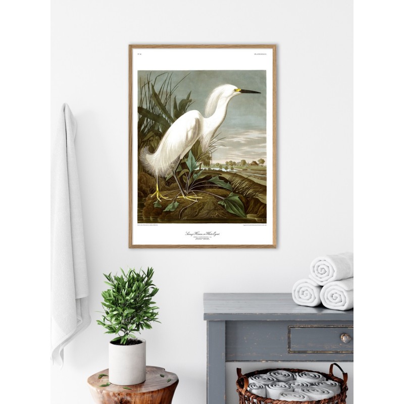 affiche peinture oiseau audubon heron the dybdahl snowy heron