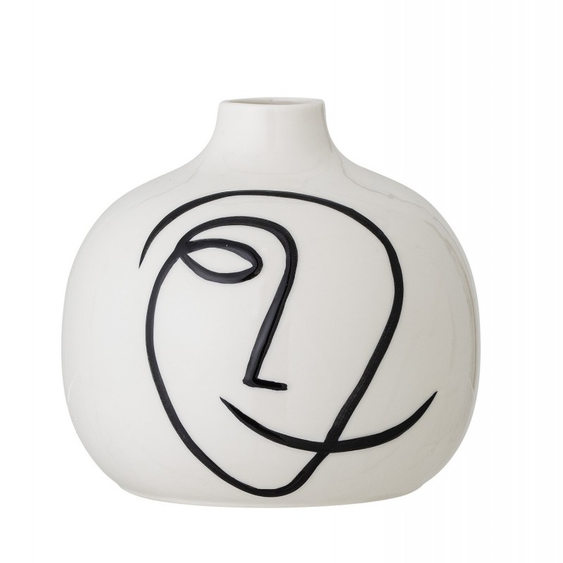 Die Norma Vase von Bloomingville ist in weißem Sandstein mit einem schönen ursprünglichen schwarzen Kubistenmuster. Es sieht aus wie ein Gemälde, das zweifellos einen künstlerischen Touch in Ihr Innere bringen wird.