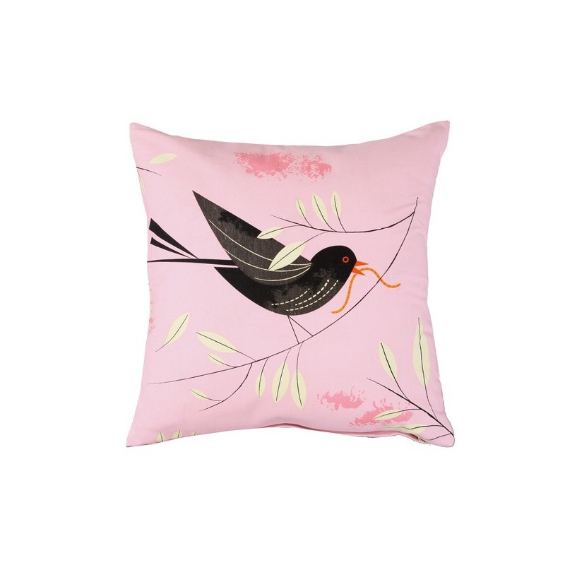 Dekoratives Kissen pink blackbird magpie Vogel40 x 40)