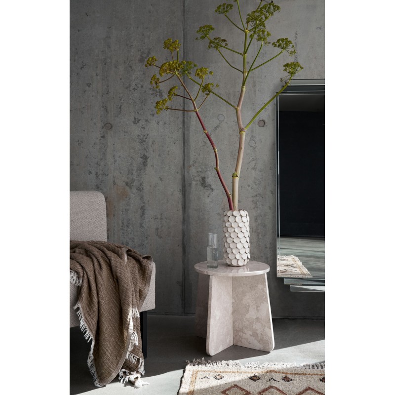 Handgefertigt mit kleinen Kreisen aus glasiertem weißem Steinzeug, die eine Art Schild um die Vase bilden, hat die Vase House Doctor Dot ein sehr originelles skulpturales Aussehen, sie kann allein verwendet oder mit einem schönen Blumenstrauß sublimiert werden.