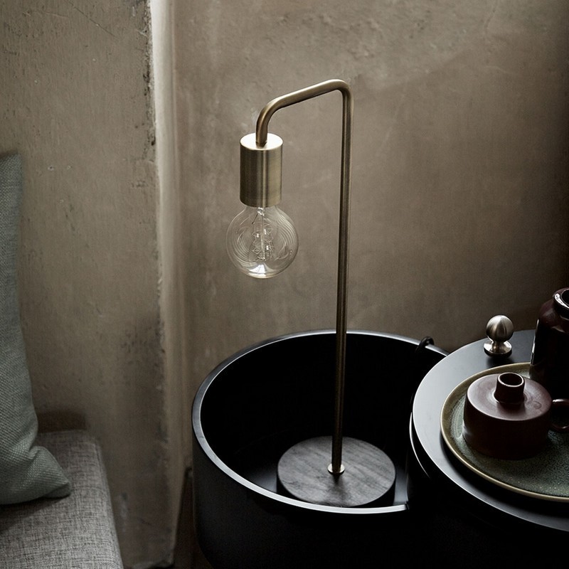 Retro Tischlampe Cool Frandsen Antik Messing Dunkle Eiche Holzsockel