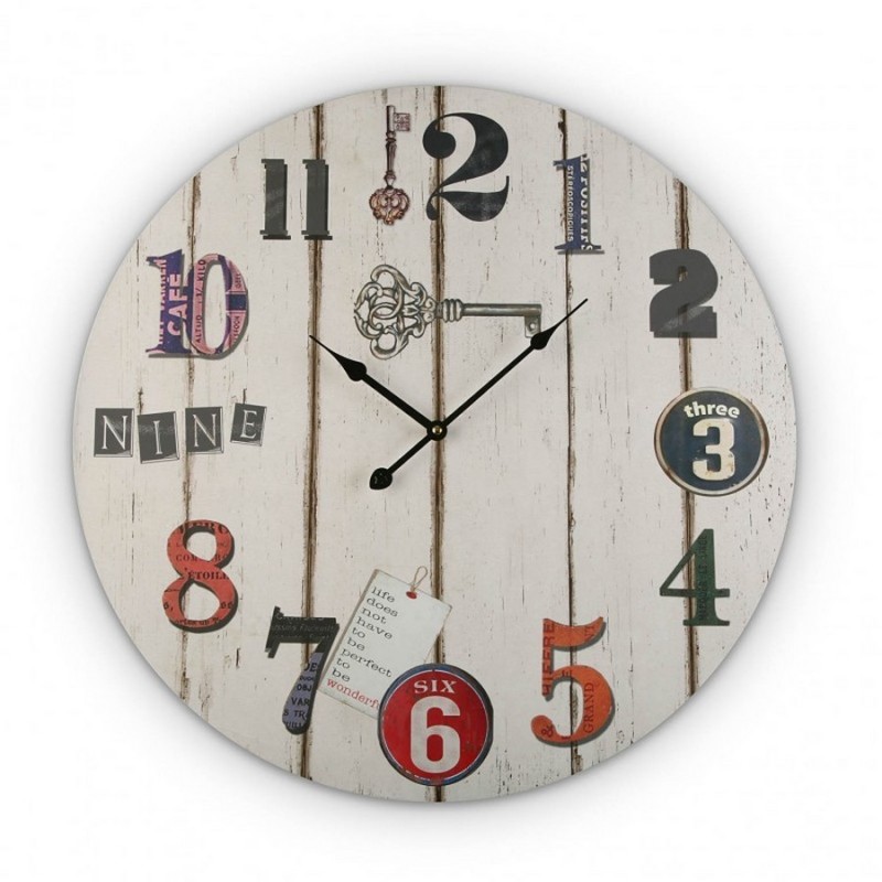 Vintage Deco Versa Weiße runde Wanduhr aus Holz