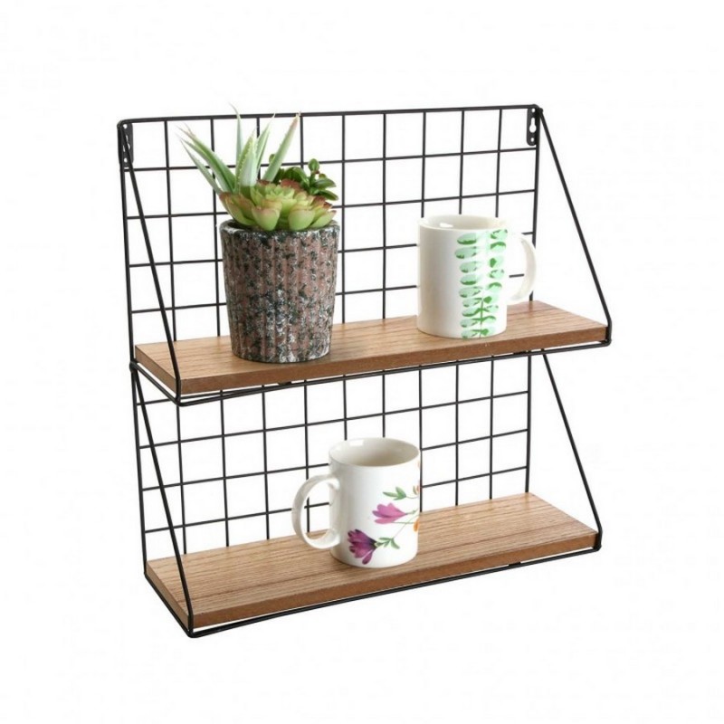 Versa zweistöckiges Wandregal aus schwarzem Metall und Holzdraht