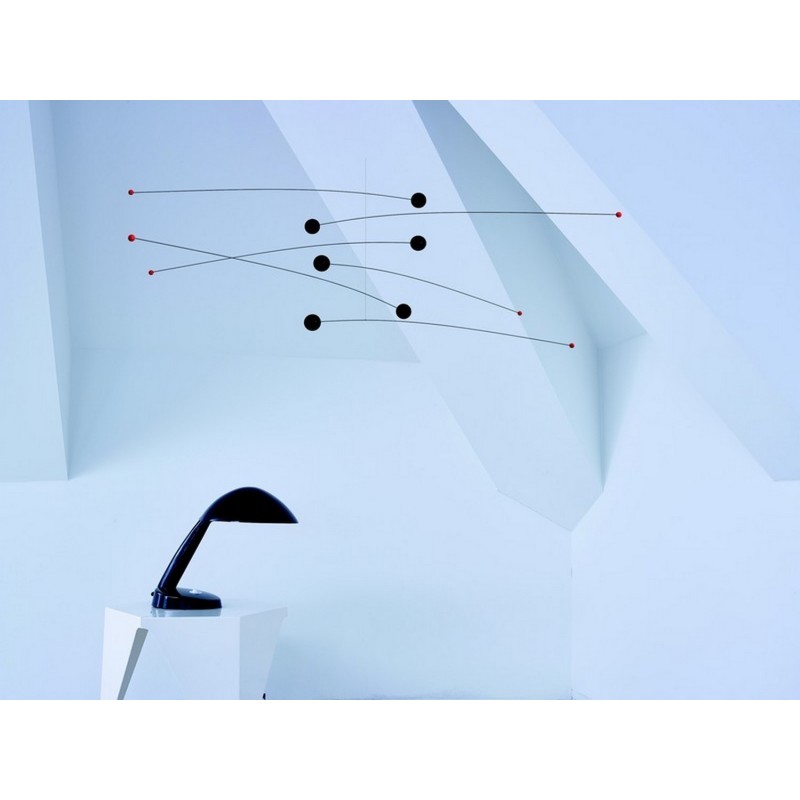 Das Futura-Mobile symbolisiert sechs Planeten mit ihren Monden oder vielleicht die helle und dunkle Seite des Menschen. Das Futura-Mobil zittert bei der geringsten Luftbewegung, selbst in den geschlossensten Räumen.