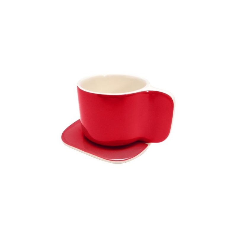 Die sehr gelungene Kombination der Primärfarben des zweifarbigen Steinguts und des Designs machen diesen Becher zu einem zukünftigen Sammlerstück.