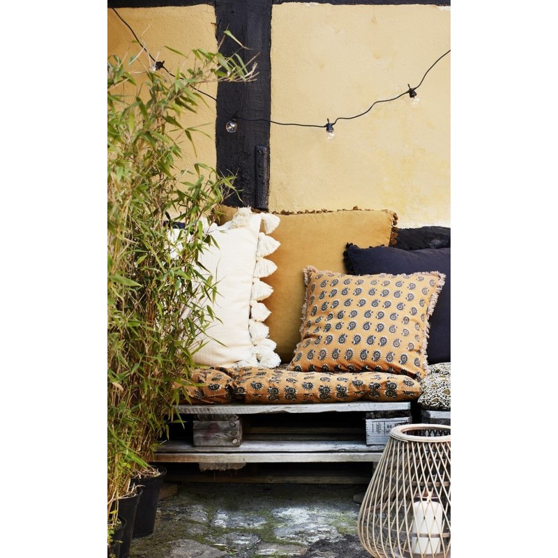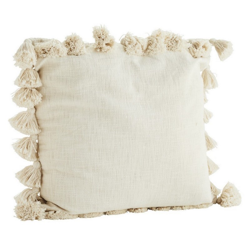 madam stoltz housse de coussin toile de coton blanc ecru pompons 65 x 65 cm