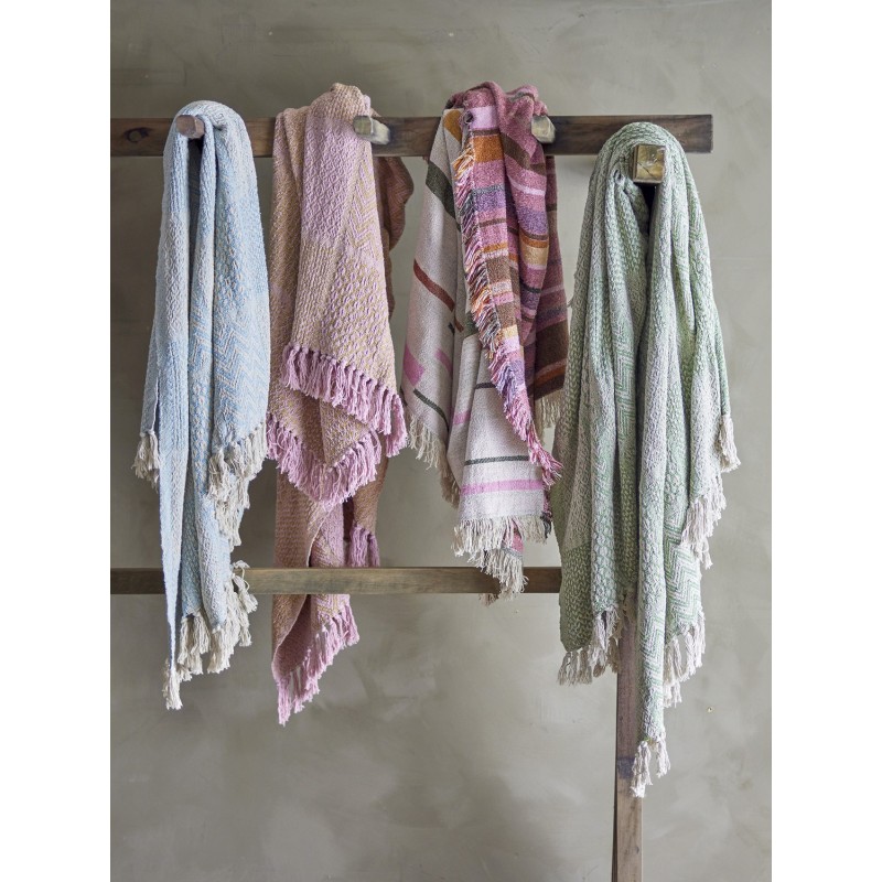 plaid multicolore coton recycle motif raye rose bloomingville toscana