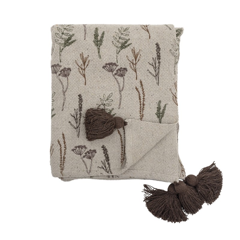 plaid coton recycle naturel imprime fleurs prairie bloomingville