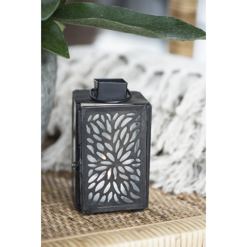 ib laursen petite lanterne decorative metal ajoure noir vintage verre