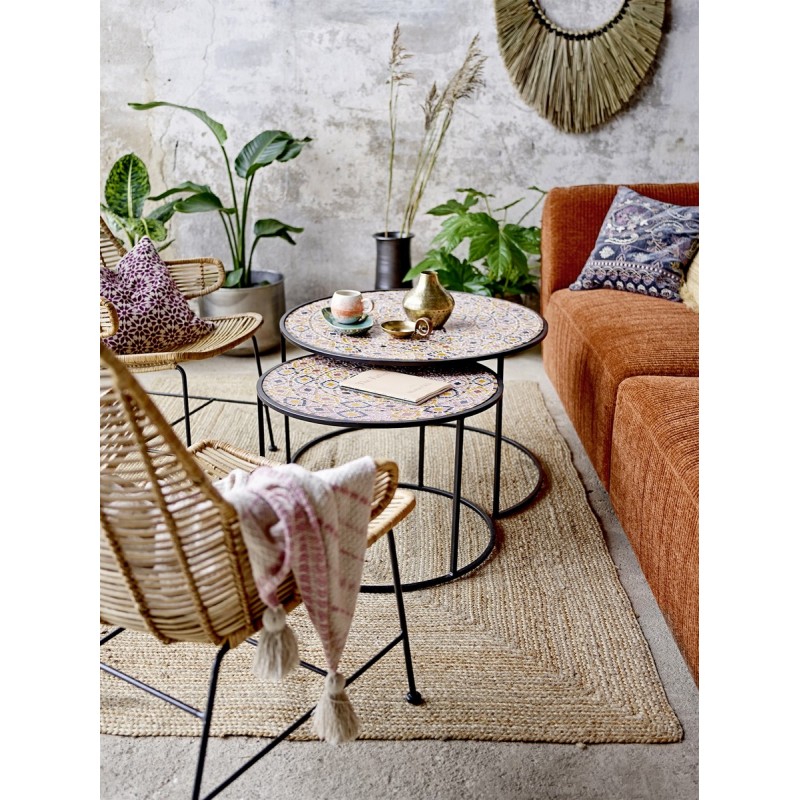 bloomingville plaid coton recycle rose tie dye pompons