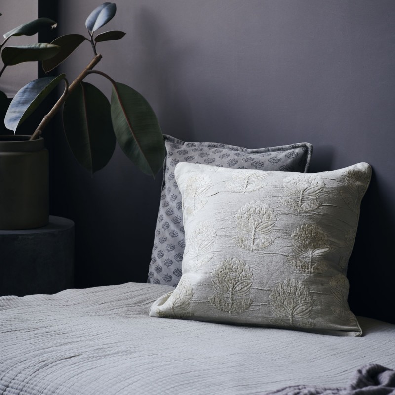 house doctor housse de coussin coton ecru broderie velours 50 x 50 cm