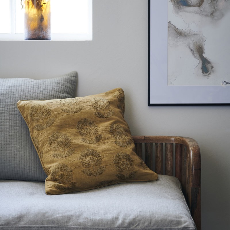 house doctor housse de coussin carre impression velours jaune moutarde
