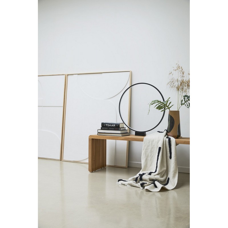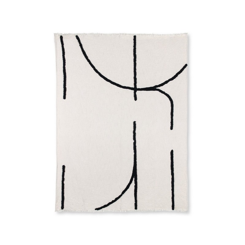 hk living plaid blanc design abstrait lignes noires tuftes coton