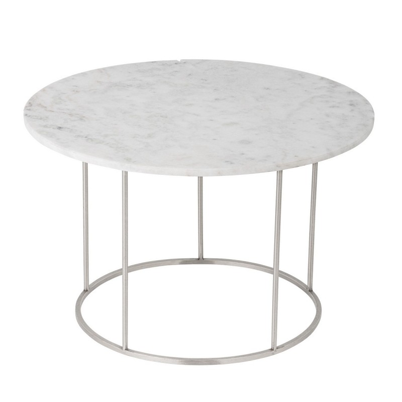 bloomingville table basse ronde plateau marbre blanc metal argent