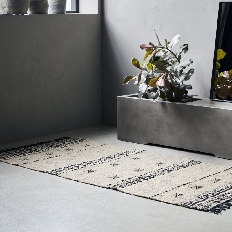 house doctor cros tapis franges motif laine beige noir 200 x 90 cm