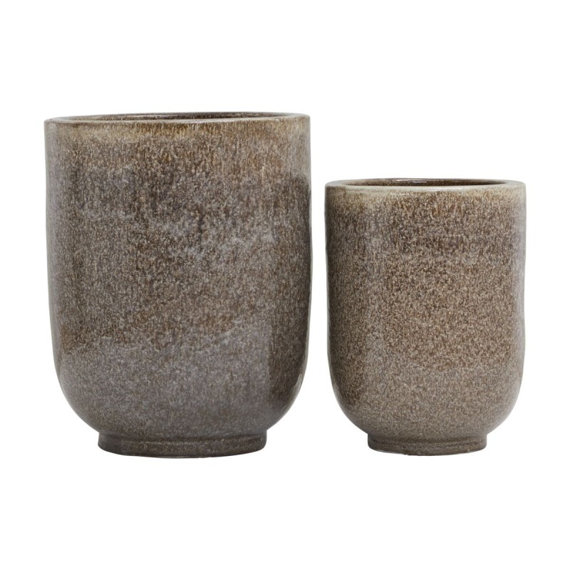 house doctor set de 2 grands pots de fleurs chic ceramique marron