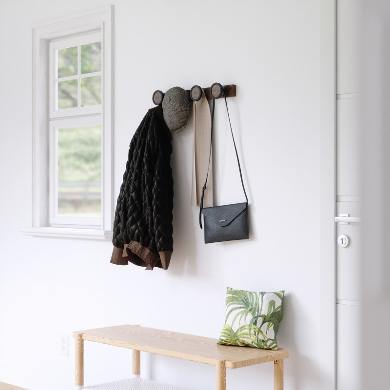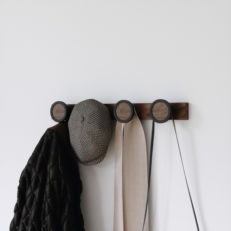 portemanteau mural contemporain bois fonce noyer umbra hub rail