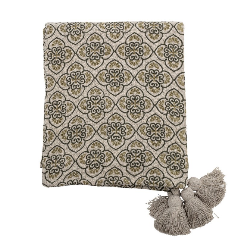 bloomingville plaid imprime fleurs pompons vert