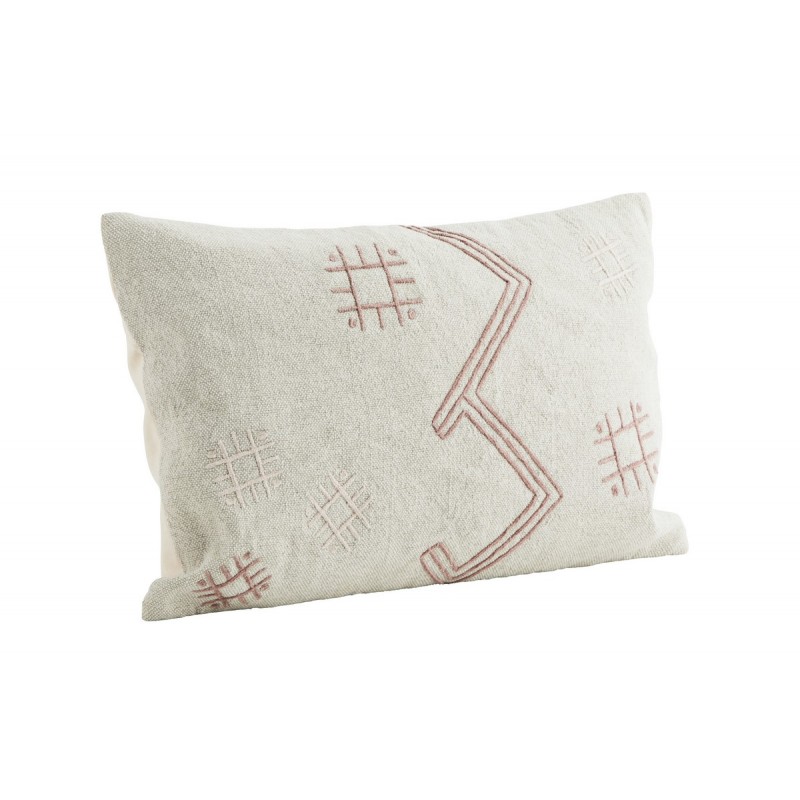 madam stoltz housse coussin rectangulaire coton motif brode ecru rose