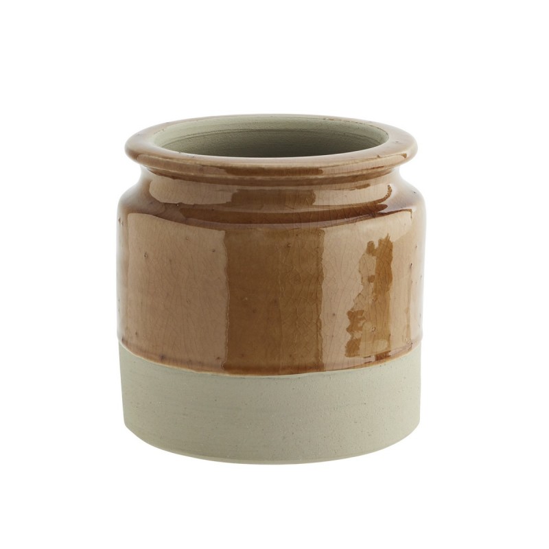 madam stoltz pot de fleur rustique terre cuite emaille bicolore marron