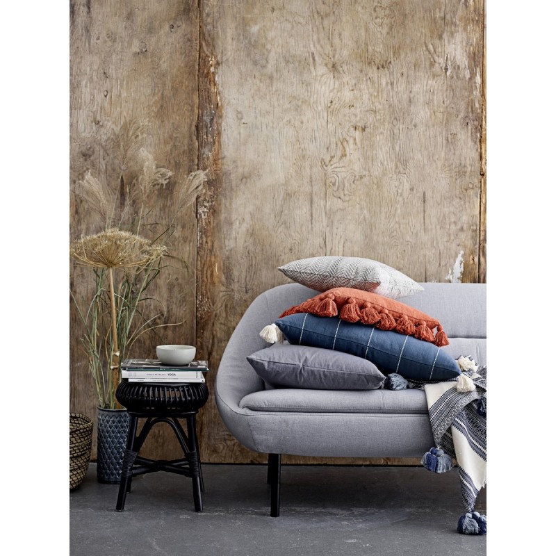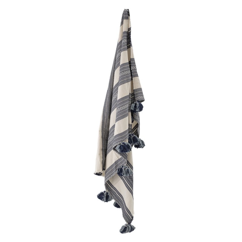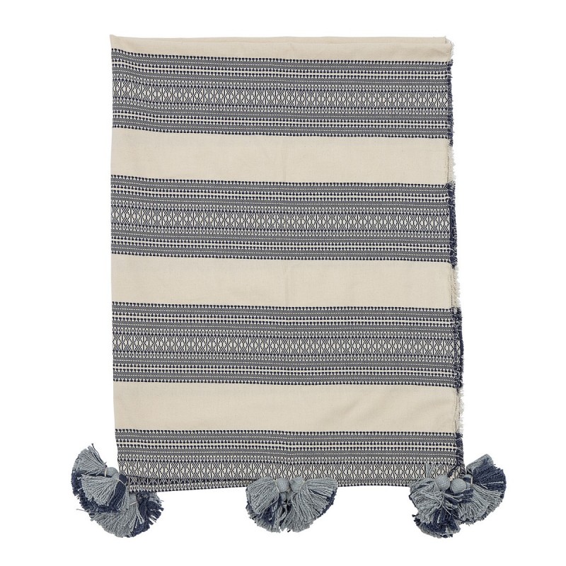 bloomingville plaid coton imprime rayures large blanc gris pomopons