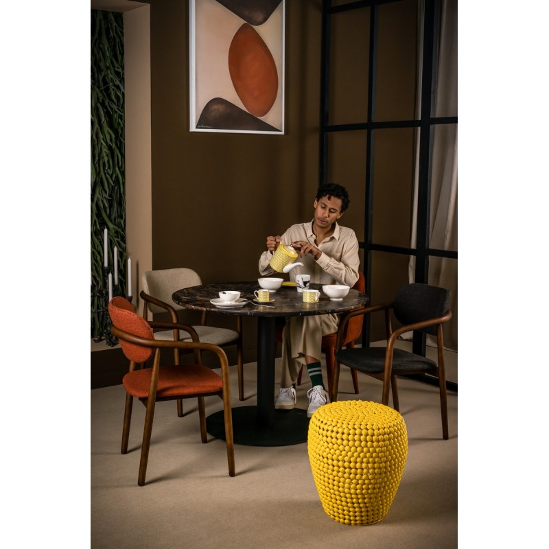 pols potten henry chaise classique elegante 70 s bois fonce tissu gris