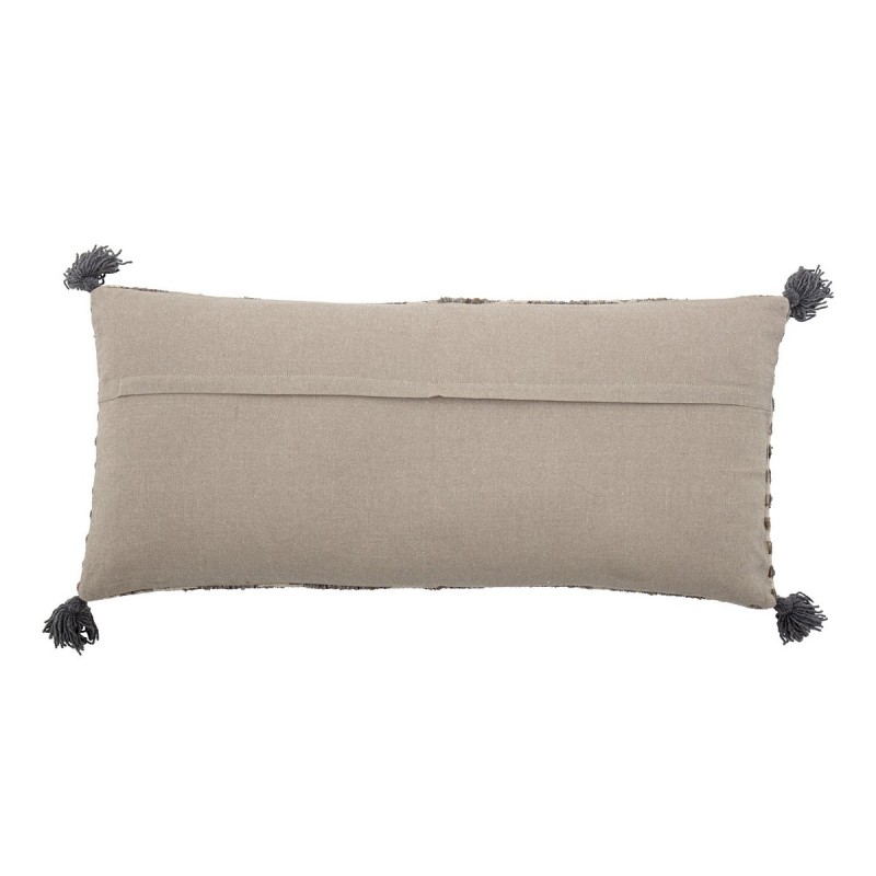 bloomingville coussin long imprime geometrique marron pompons 90 cm
