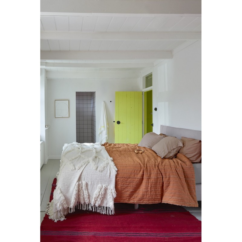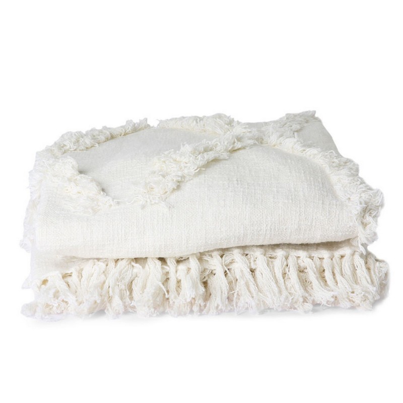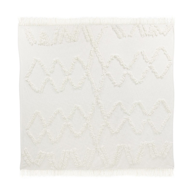 hk living jete de lit coton motif tufte blanc franges 270 x 270 cm