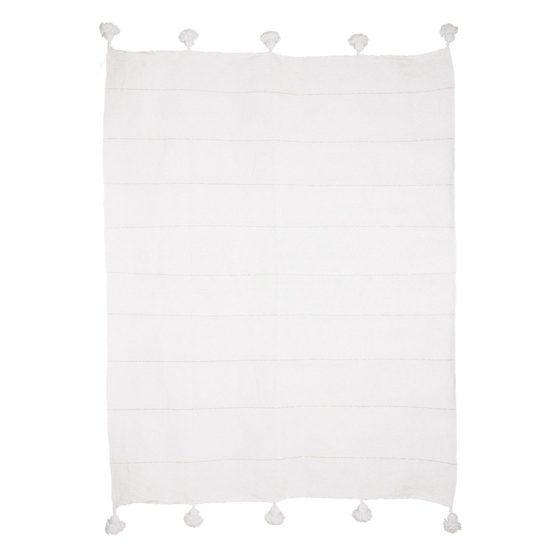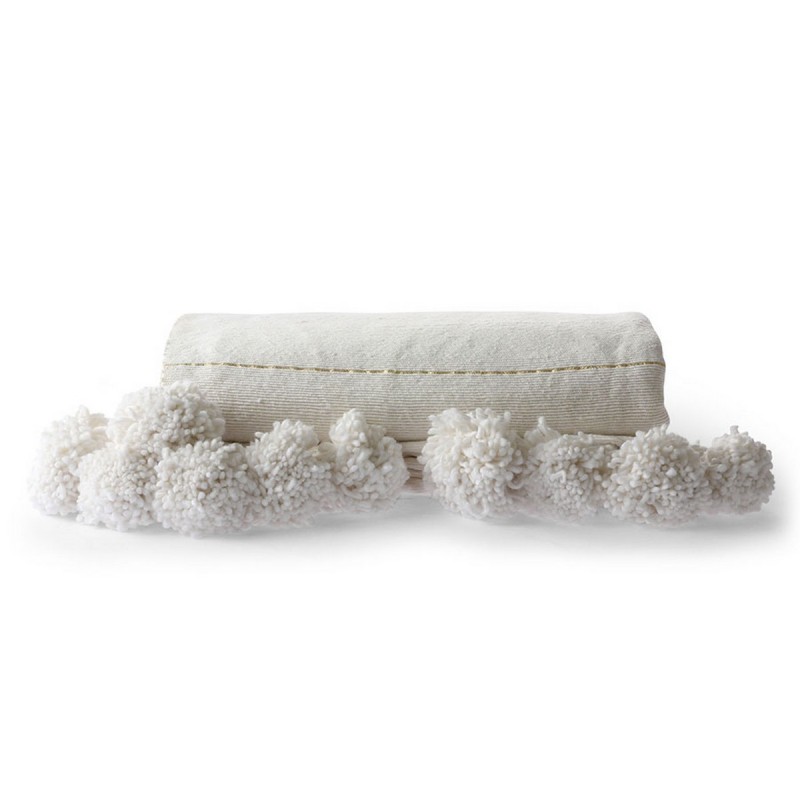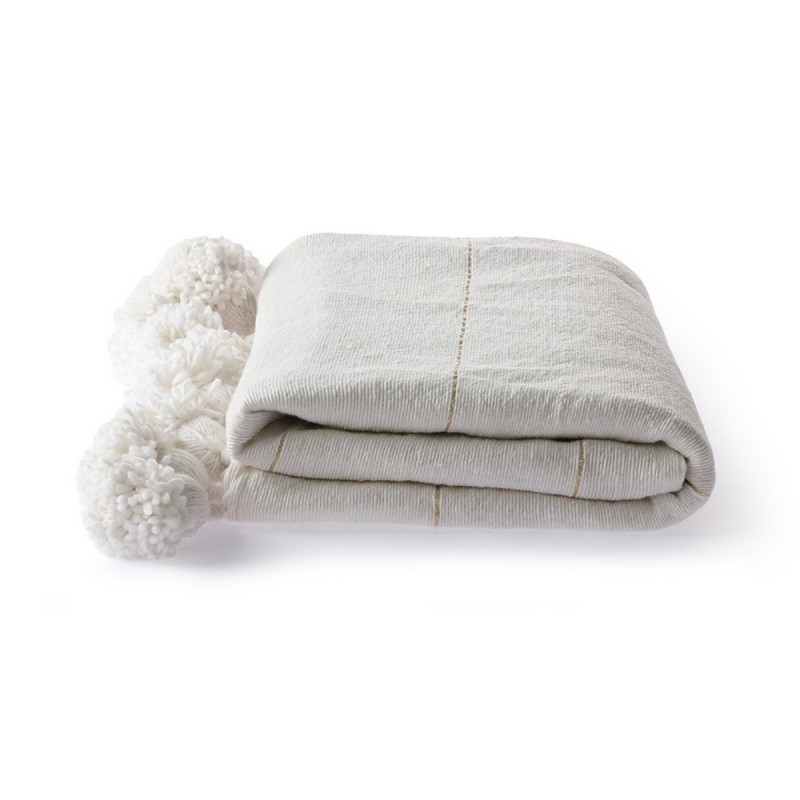 hk living couvre lit coton blanc fil dore pompons 130 x 170 cm
