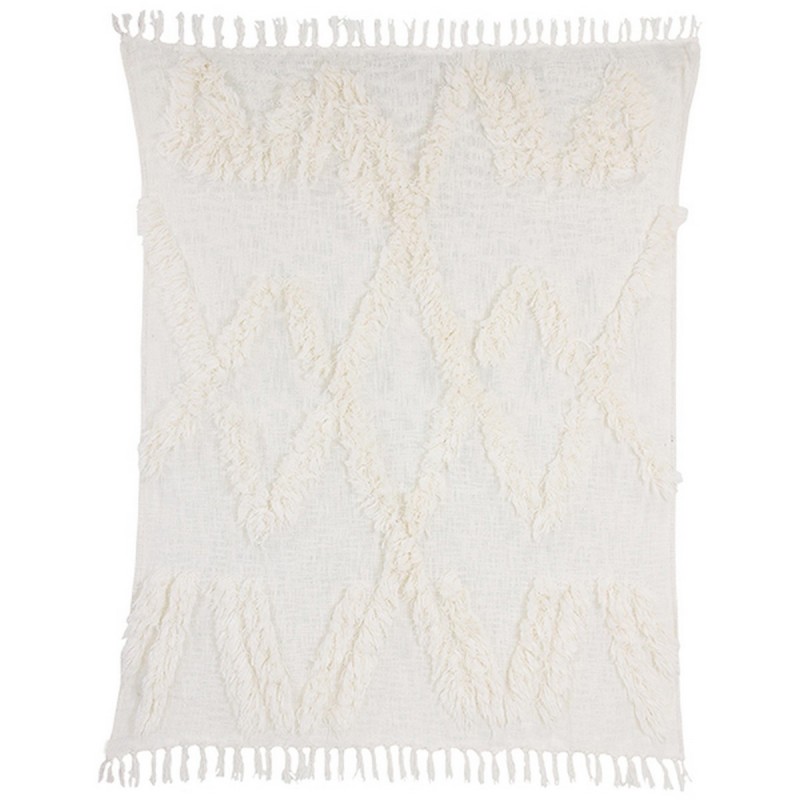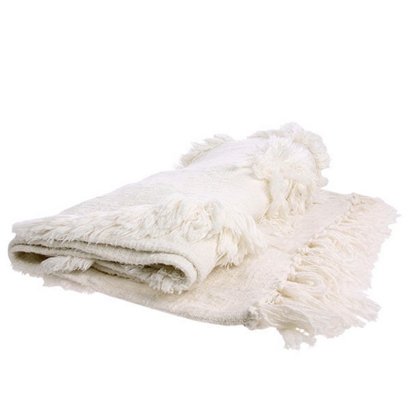 hk living plaid blanc coton motif tufte franges 130 x 150 cm