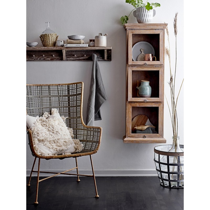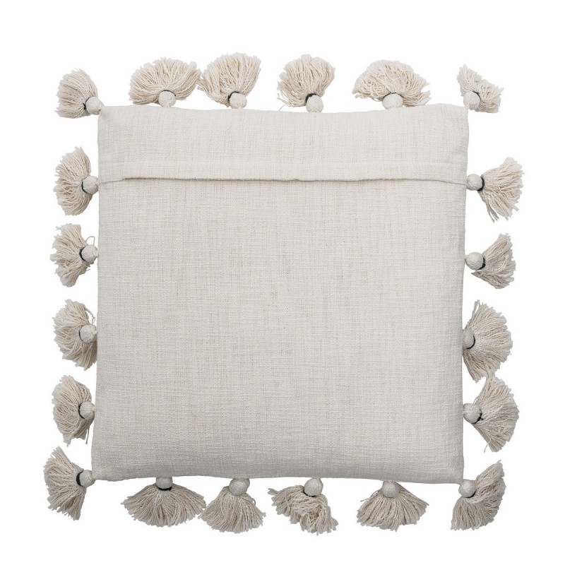 bloomingville coussin blanc tufte franges pompons carre 50 x 50 cm