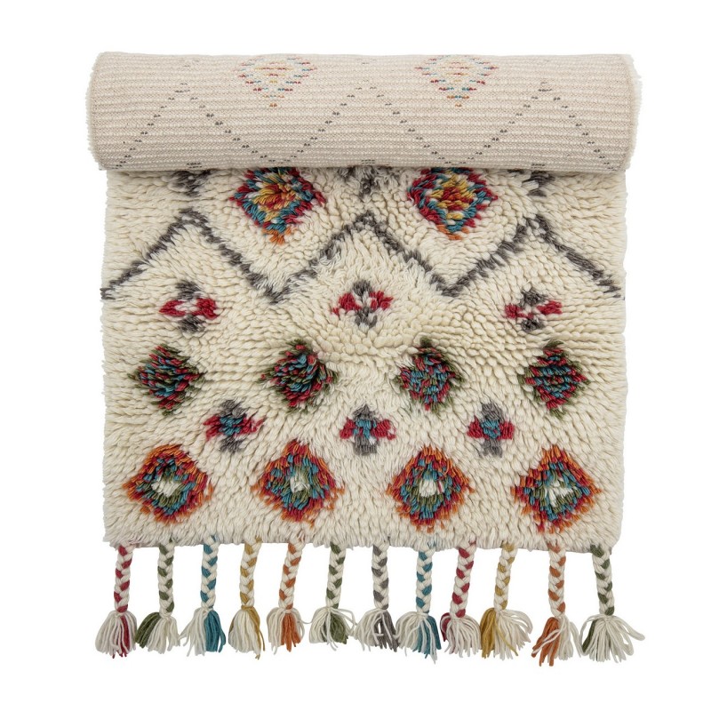 bloomingville tapis laine tufte multicolore franges ibne