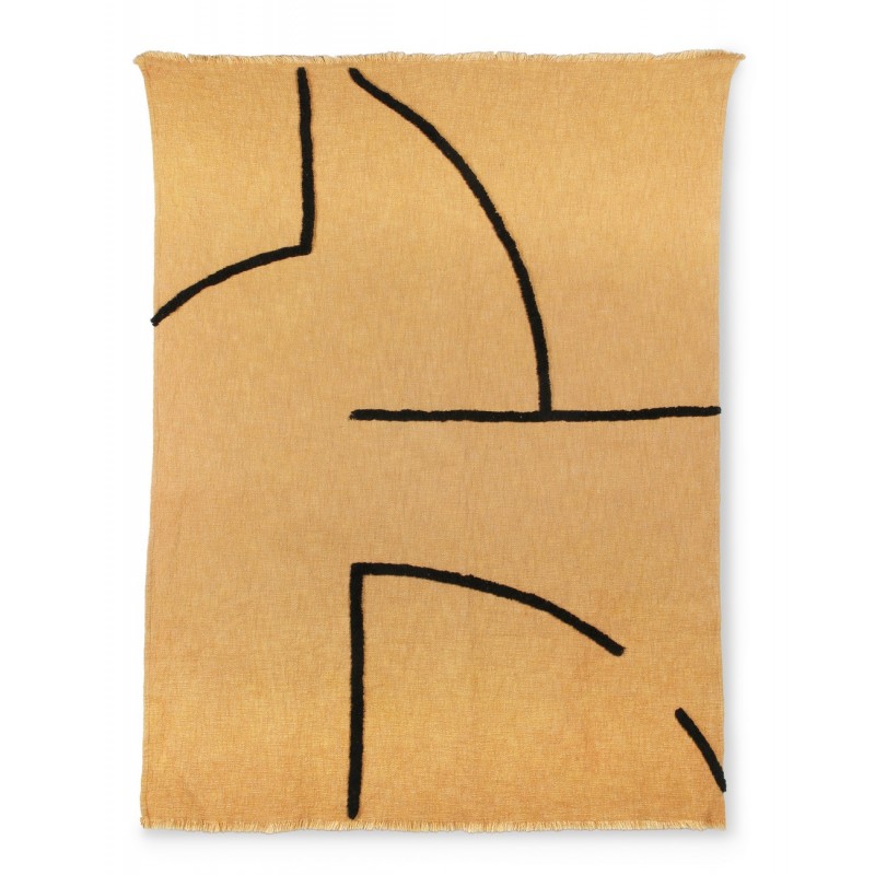 hk living plaid jete de lit doux coton jaune ocre traits noirs tufte
