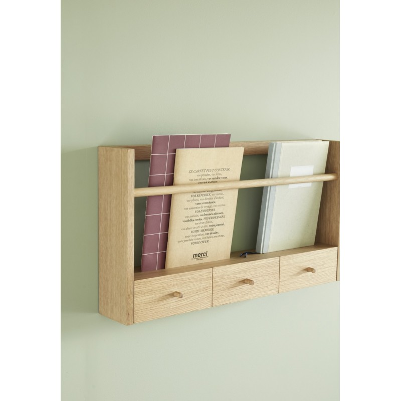 hubsch etagere murale etroite livres style scandinave 3 petits tiroirs
