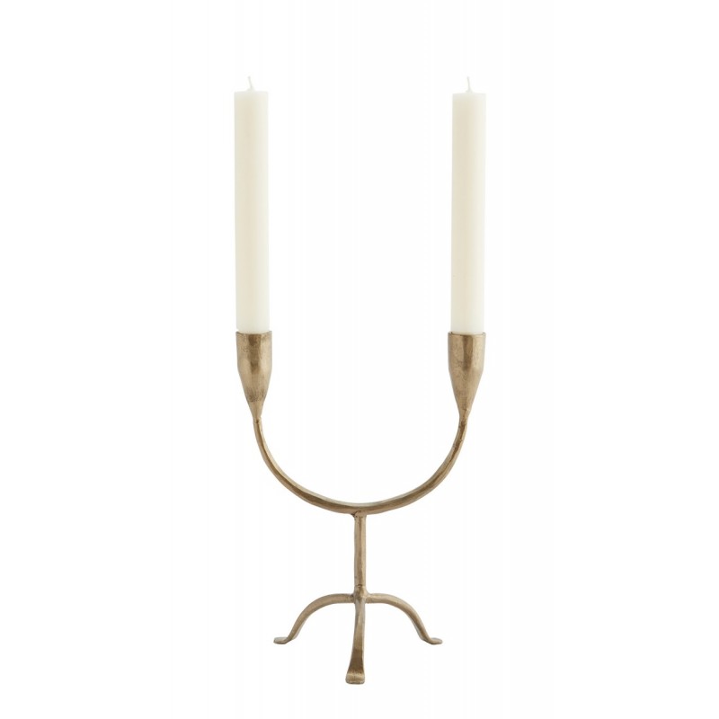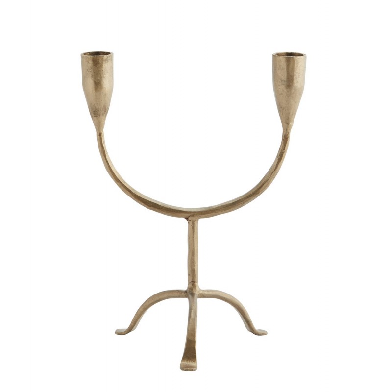 madam stoltz bougeoir sur pied double metal forge dore laiton