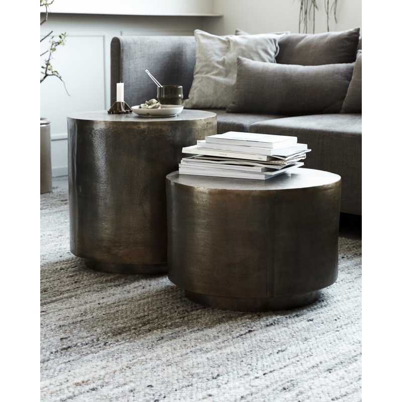 house doctor table basse ronde metal laiton patine antique rota