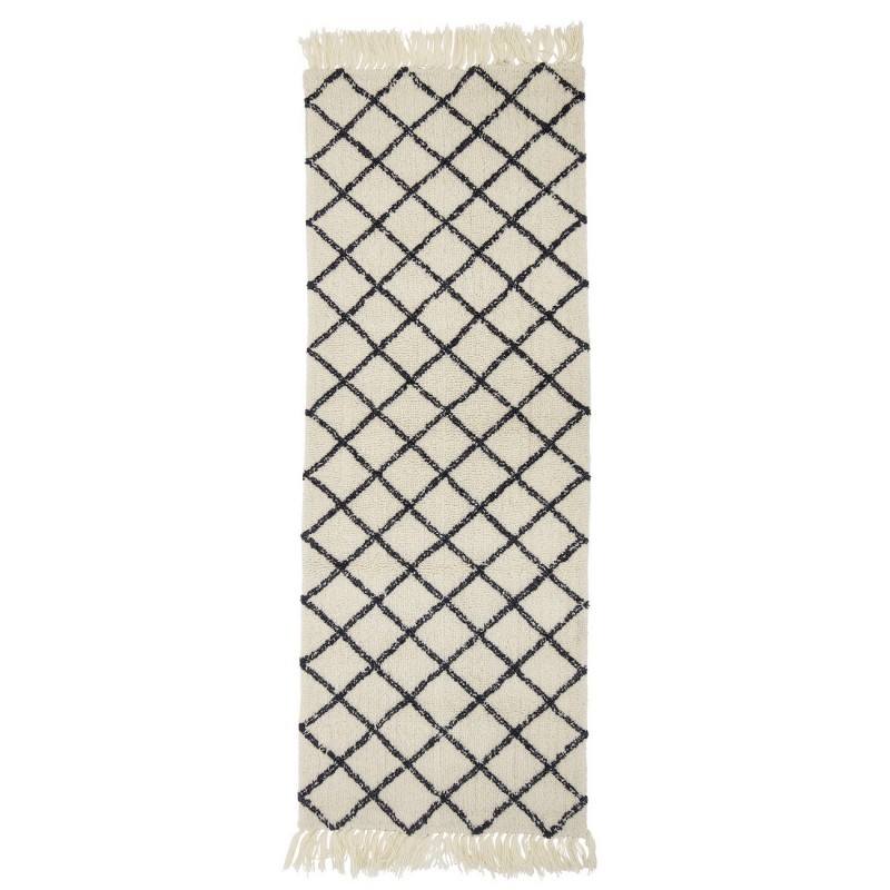 bloomingville tapis de couloir laine noir blanc losanges