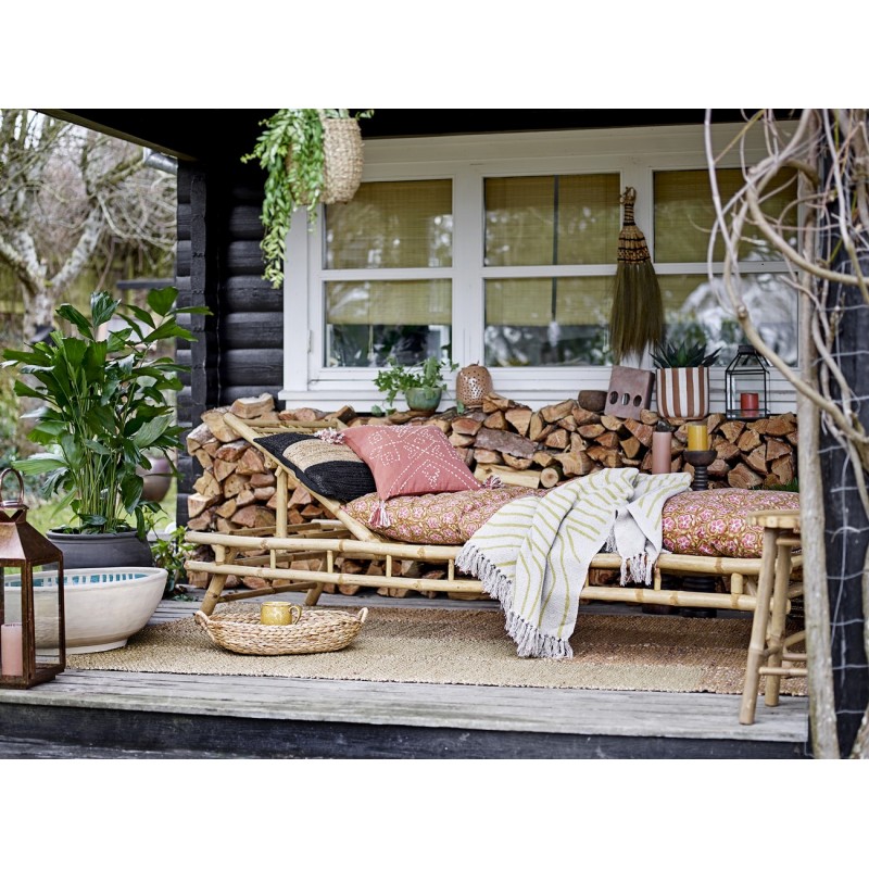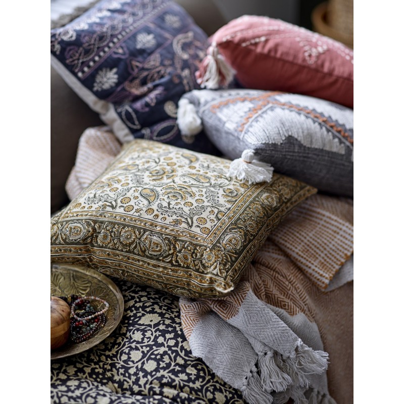 bloomingville coussin carre coton brode orange corail pompons