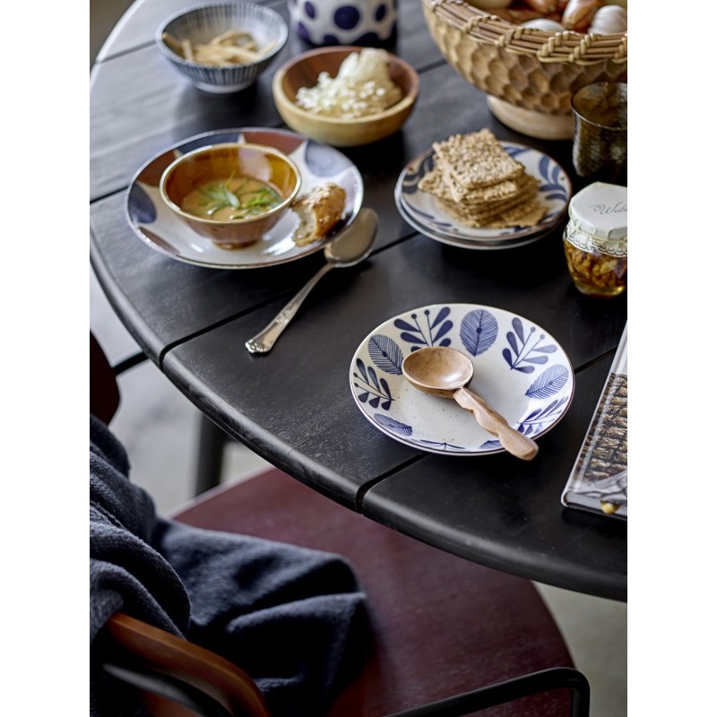 bloomingville plaid bleu marine fonce uni pompons coton recycle genet