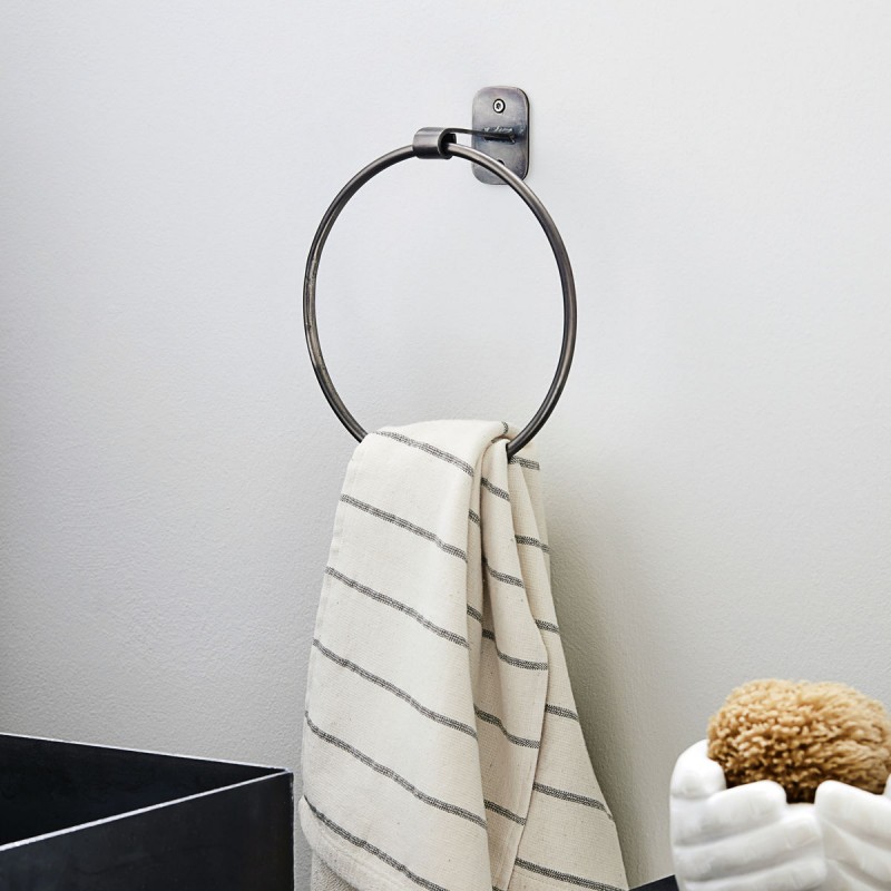 house doctor porte serviette anneau mural metal noir patine pati