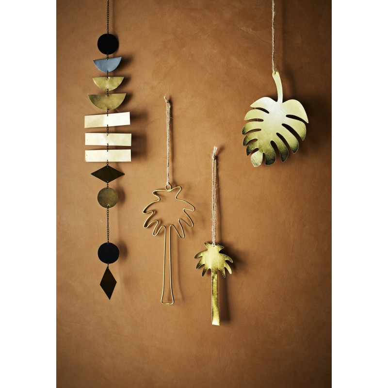 madam stoltz decoration murale a suspendre feuille en metal dore
