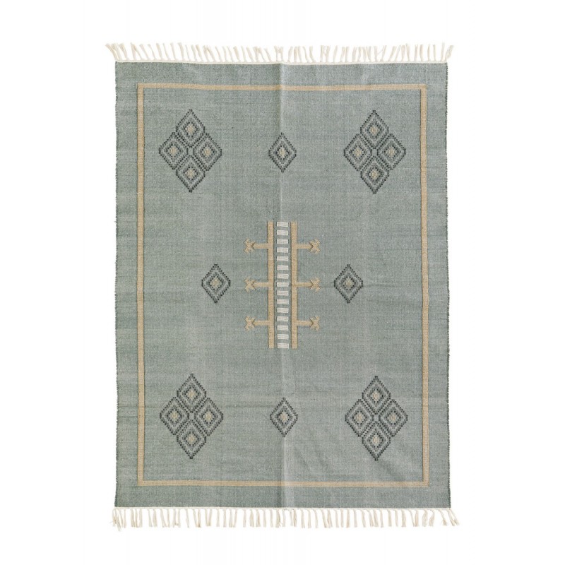 madam stoltz tapis coton tisse style ethnique vert clair jade