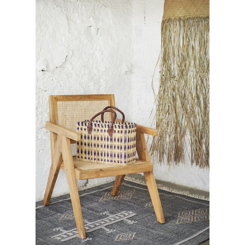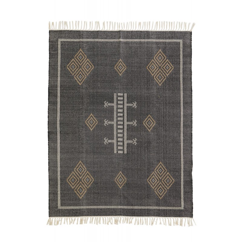 madam stoltz tapis noir coton tisse main motif geometrique ethnique