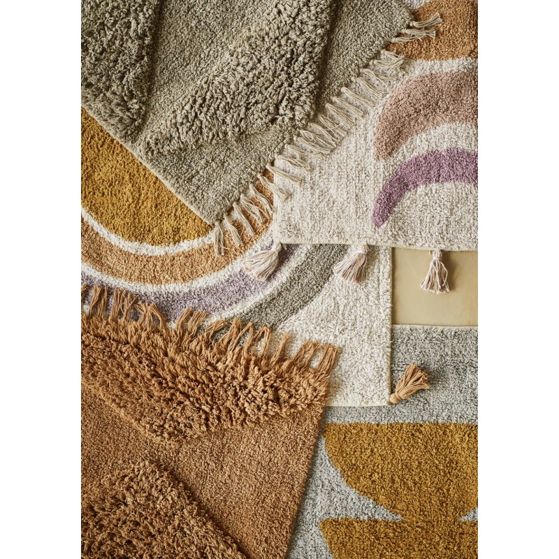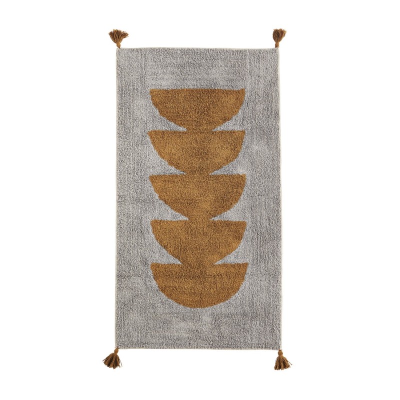 madam stoltz petit tapis moelleux colore gris orange pompons
