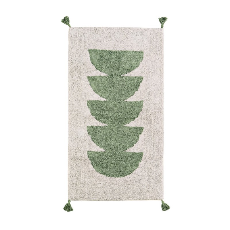 madam stoltz tapis descente de lit colore coton tufte blanc motif vert