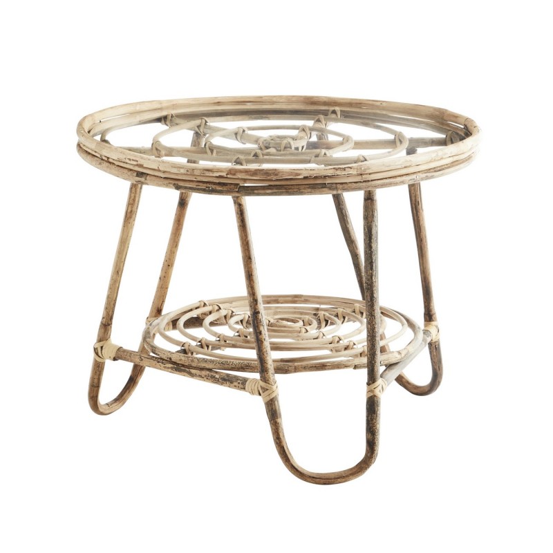 madam stoltz table basse ronde bois bambou plateau verre vintage
