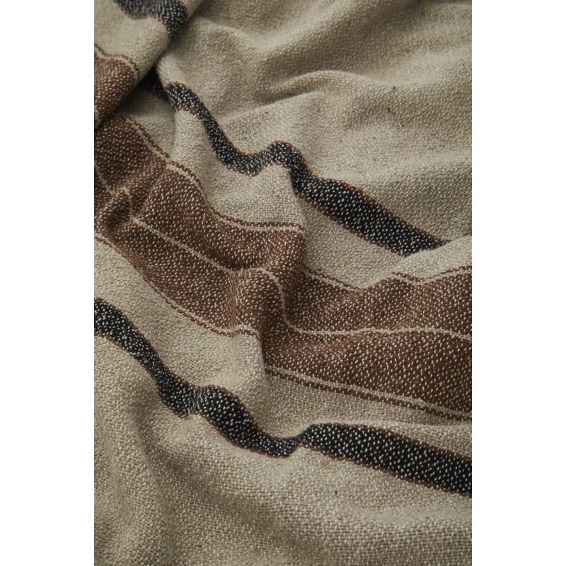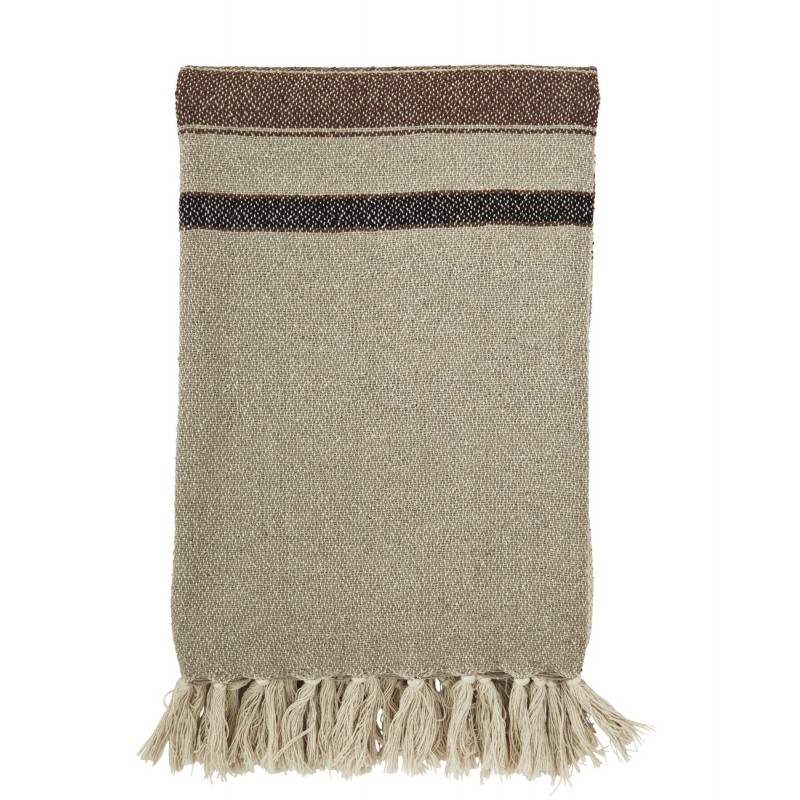 madam stoltz plaid couverture coton rayures beige marron