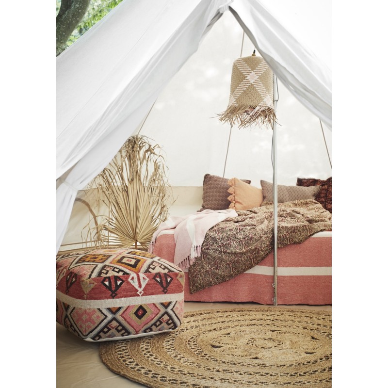madam stoltz pouf laine tisse multicolore motif ethnique