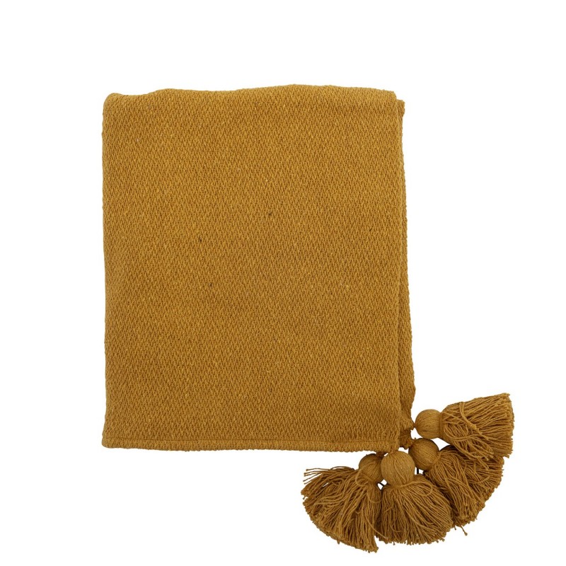 bloomingville plaid textile recycle jaune pompons genet