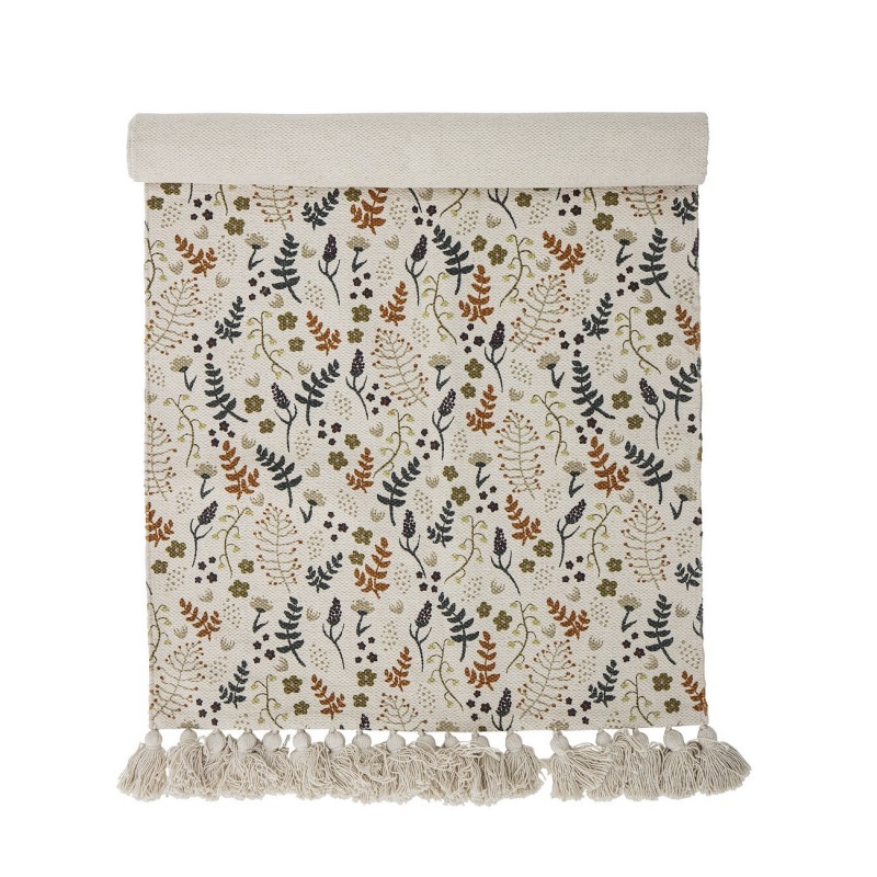 bloomingville tapis chambre enfants coton fleuri multicolore pompons